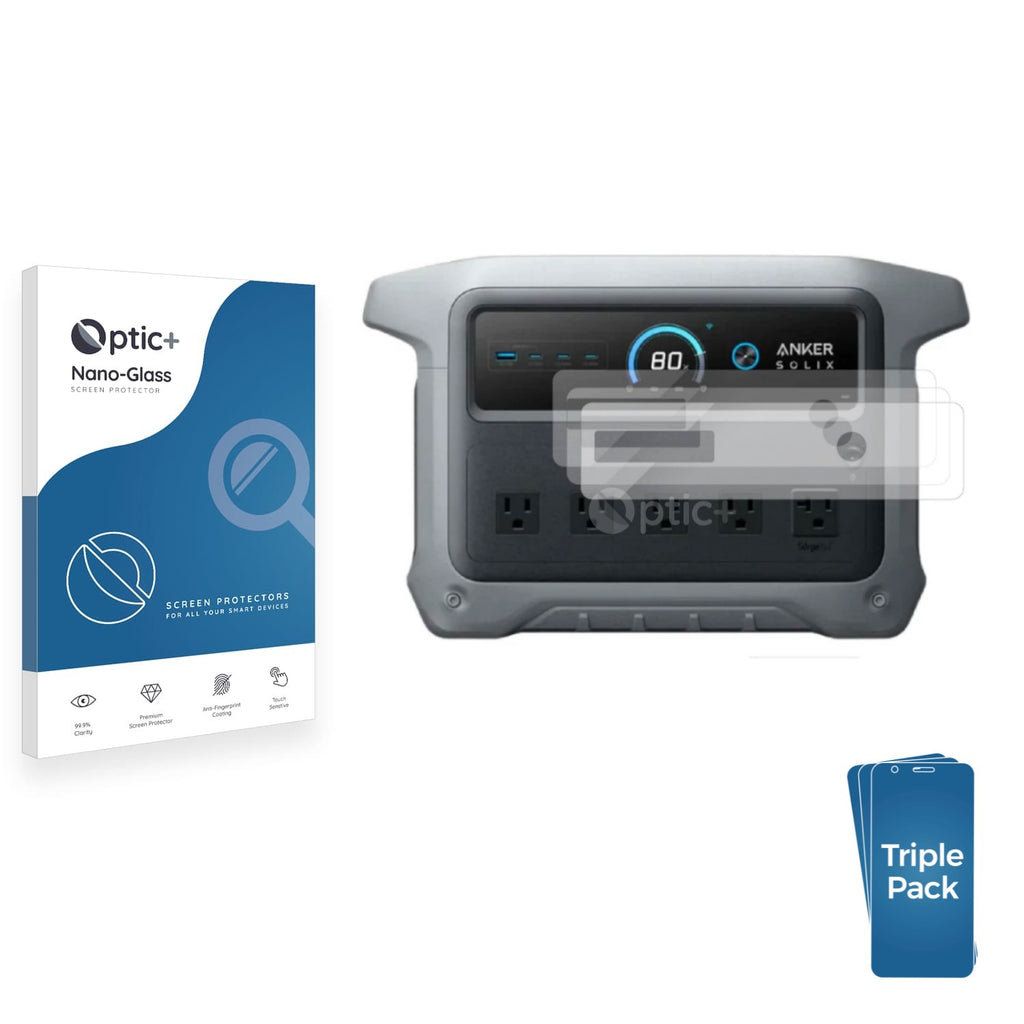- Three Pack Optic+ Nano-Glass Screen Protectors for Anker SOLIX C1000 (2nd Gen)