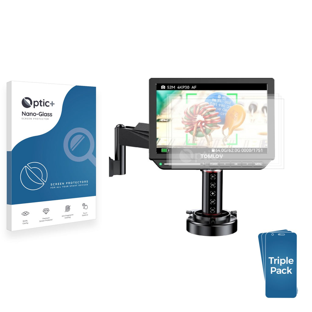 • Three Pack Optic+ Nano-Glass Screen Protectors for Tomlov TM4K-4K FLEX