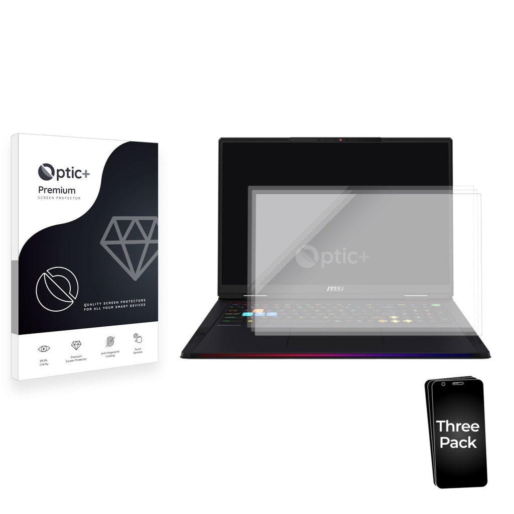 - Three Optic+ Premium Film Screen Protectors for MSI Raider 18 HX AI 2025