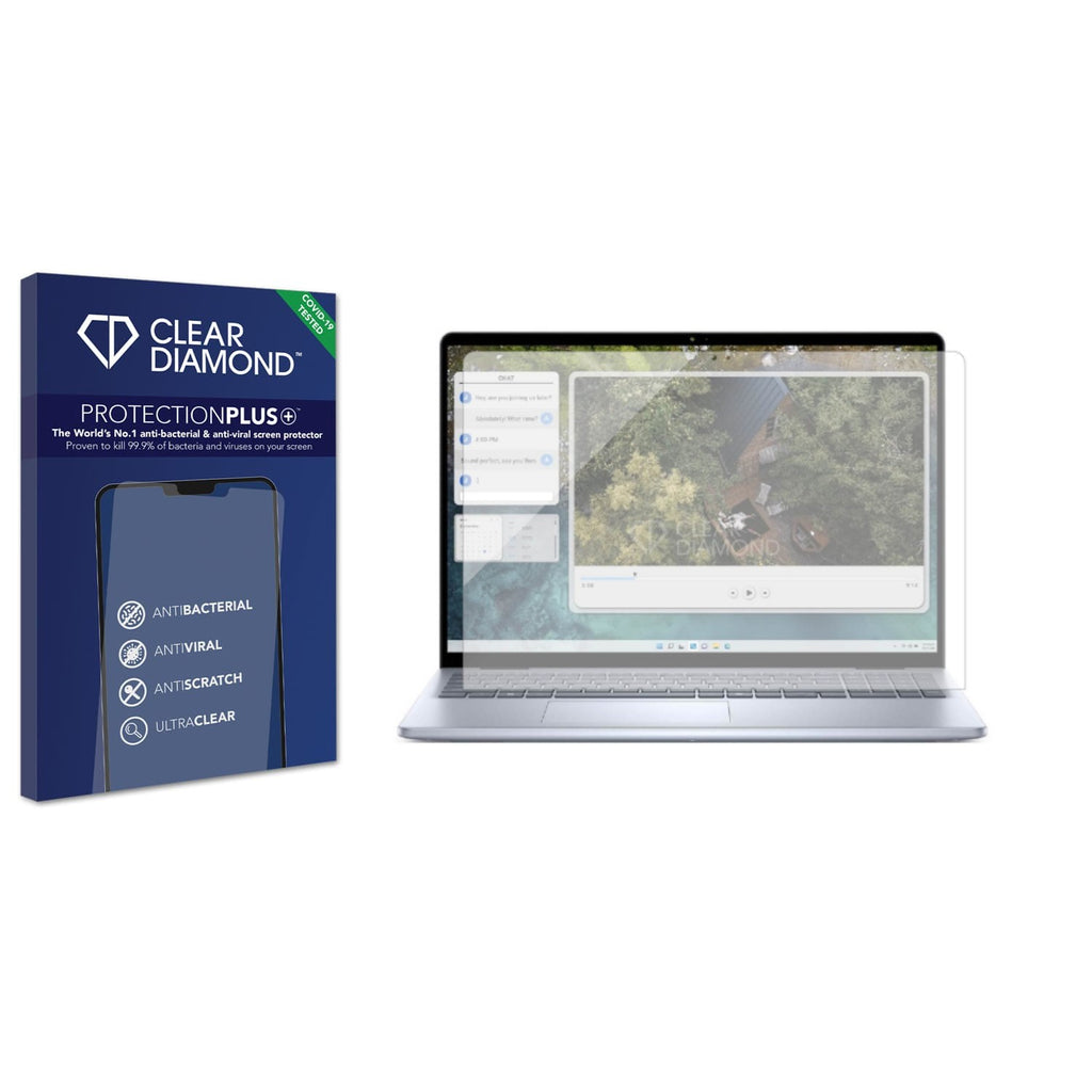 The Clear Diamond Screen Protection film for Dell Inspiron 16 5645 Laptop is easy to install and provides anti-bacterial, anti-viral and anti-scratch protection for your touchscreen with a crystal-clear finish. Display Protection is key to maintaining a touchscreens integrity and the patented Protection Plus+ anti-bacterial hard-coat layer in Clear Diamond Screen Protection Films enables you to protect your screen and yourself.